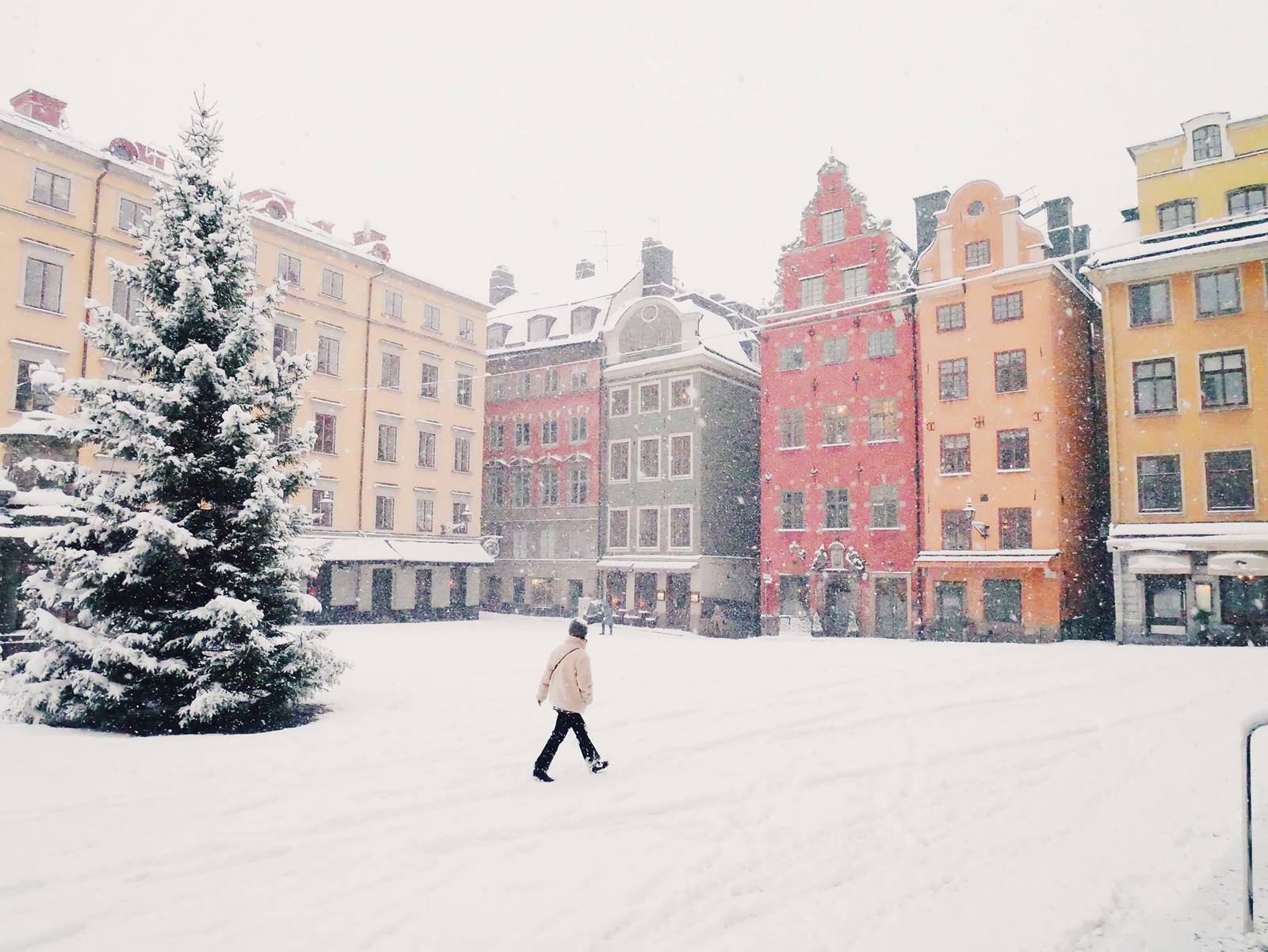 Snow in Stockholm! This is Stortorget in Gamla Stan, the old town, right now! ❄️